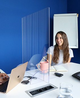 Durch das im Lager schon vorhandene Plexiglas und unsere Lasermaschine konnten wir schnell reagieren und frühzeitig die dringend benötigten Trennwände konzipieren und auf den Markt bringen.